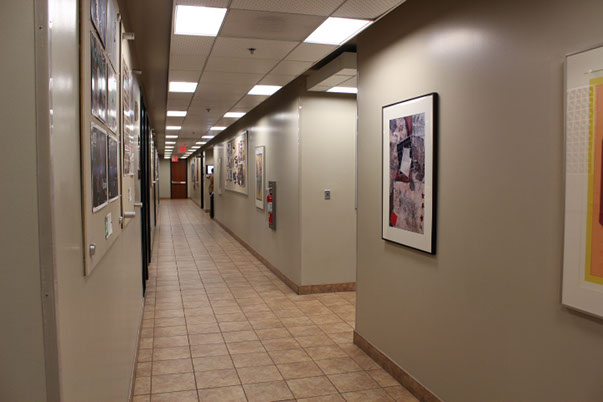 As seen above, a directory sign was needed for this area of the second floor hallway. In this before and after visual, not only was there no sign in place, but I also made changes to the color and textures of the walls, flooring and lighting to include the proposed placement of the directory sign.
