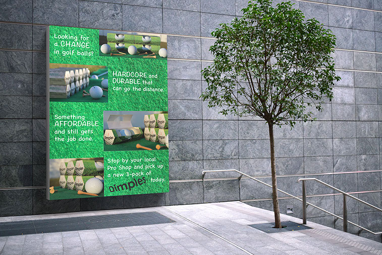 To the left, you will see a promotional poster I designed and placed in an environment to help showcase my new golf ball packaged design product.