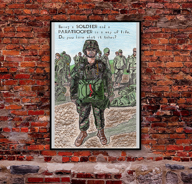 It was part of a self-portrait drawing combined with a typeface that I created from scratch called "Combat Soldier" and ultimately became a full size poster placed in its environment.