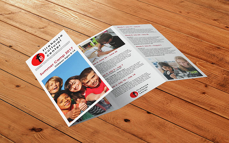 The inside panels (left side photo) list out all the summer class dates being offered in bold color headings and the descriptions below it making it easy to follow from panel to panel.