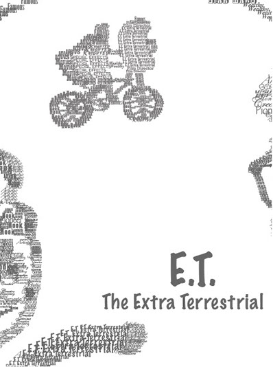 The purpose of this project was to pick a famous person and create a portrait of them in an iconic way. Steven Spielberg was my choice and after conducting more research on his background, I used some of his famous and notable attributes he is known for and incorporated that into his portrait (seen here in this photo). I used about 20 different typefaces (fonts) to help shape him and his most famous movie character, E. T.